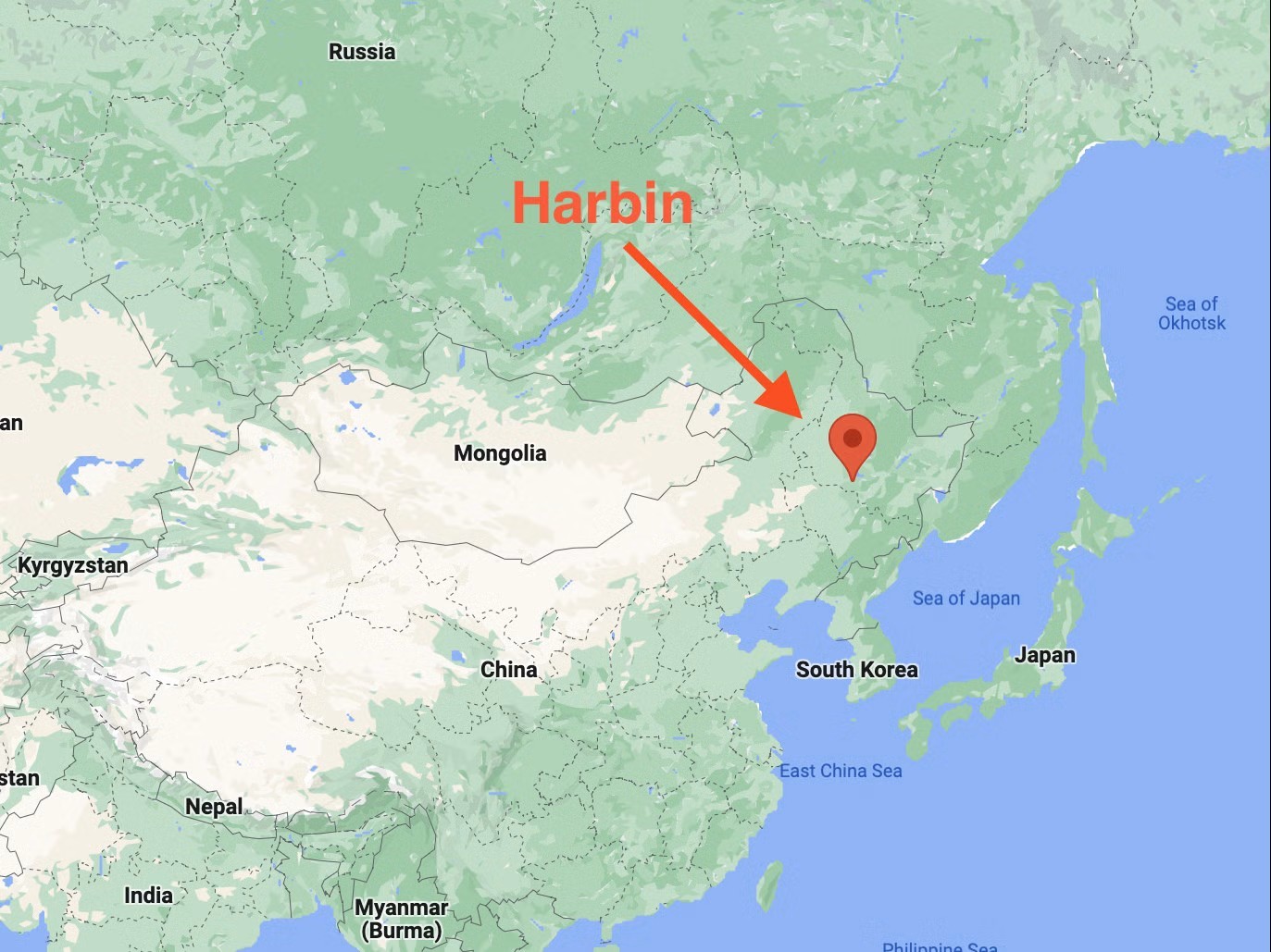 Thành phố Cáp Nhĩ Tân (Harbin) nằm ở phía Đông Bắc của Trung Quốc, gần Nga.